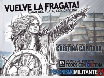 Unos lujosos cartelones en las paredes la mostraban en un cuadro con un timón con cara de Almirante y la inscripción “Cristina capitana”.