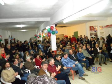 El salón principal de la sede partidaria se vió desbordado de público, que siguió con ateción los referentes partidarios de los socios que conforman el Frente.