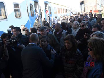 Son doce los “altos” en el camino, y en cada uno los funcionarios publicos encabezados por el Ministro de transporte Guillermo Dietrich saludaron a los vecinos que se agolparon en las vias.