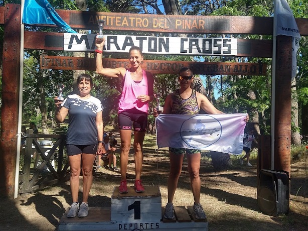 El podio damas con Silvia Bustamente, acompañada por Celeste Aguilar y Maria Aguero