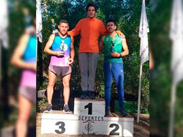 Podio caballeros: Brian Gauna, escoltado por Leonel Cesar (Dolores) y Alejandro Olmedo (Santa Teresita)