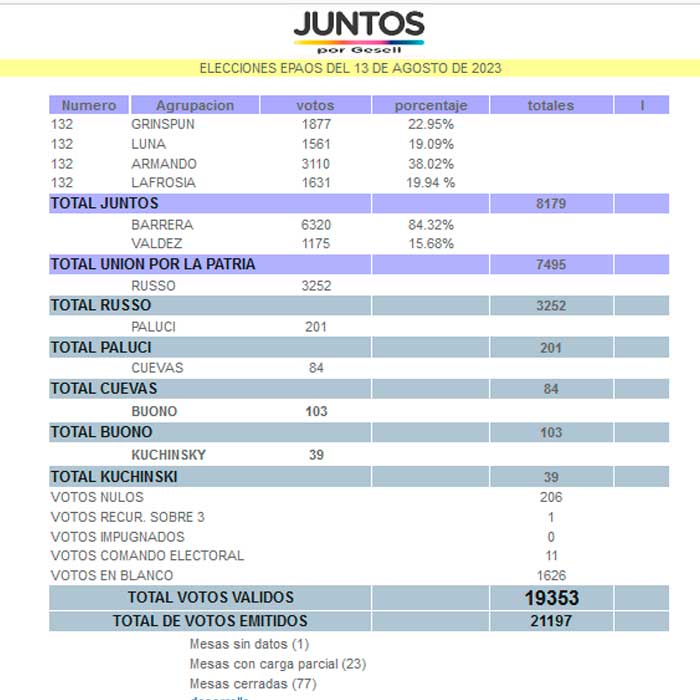Este es el escrutiño provisorio, cuando faltan datos de una mesa