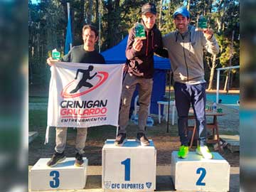 Podio masculino: el geselino Roberto Benitez junto al Pinamarense Cristian Hernandez y el Madariaguense Sandro Caceres